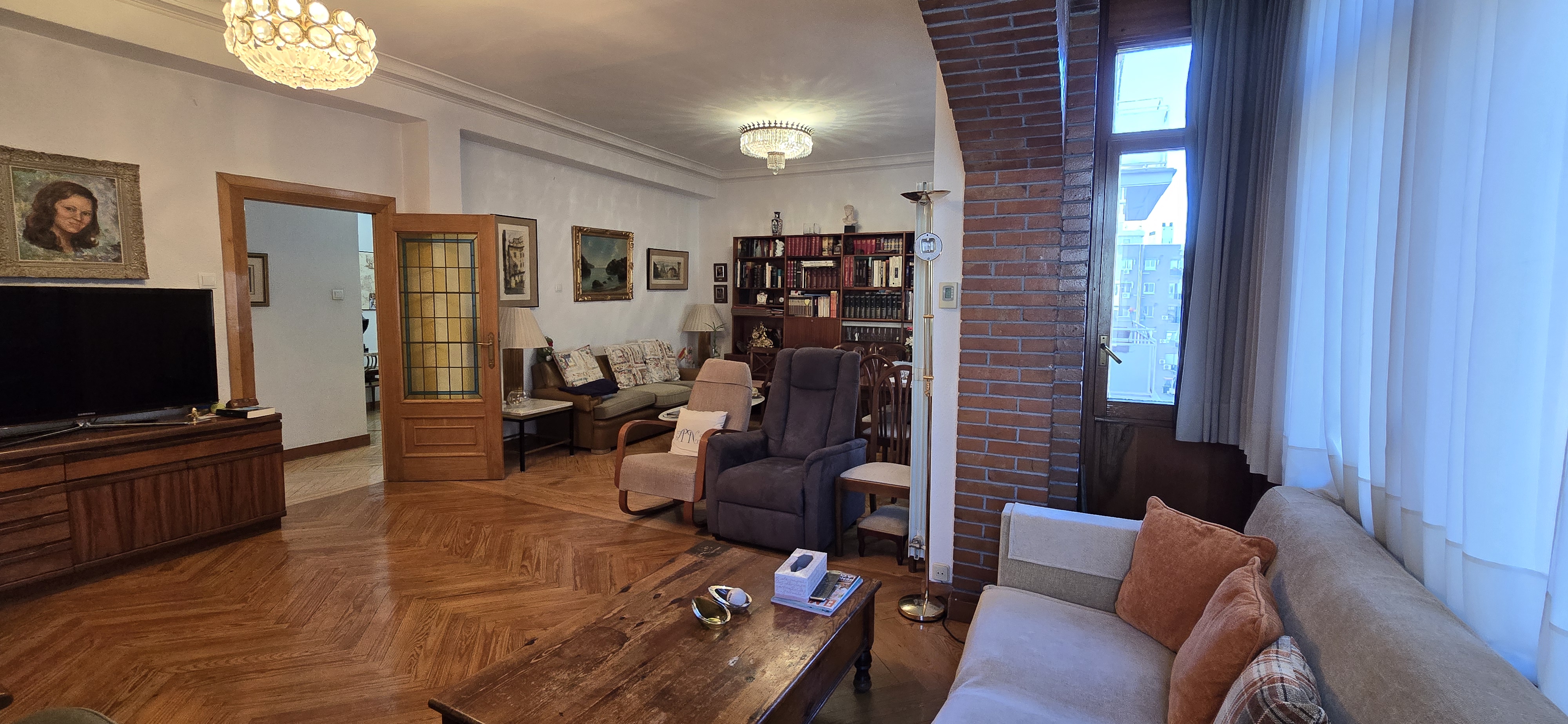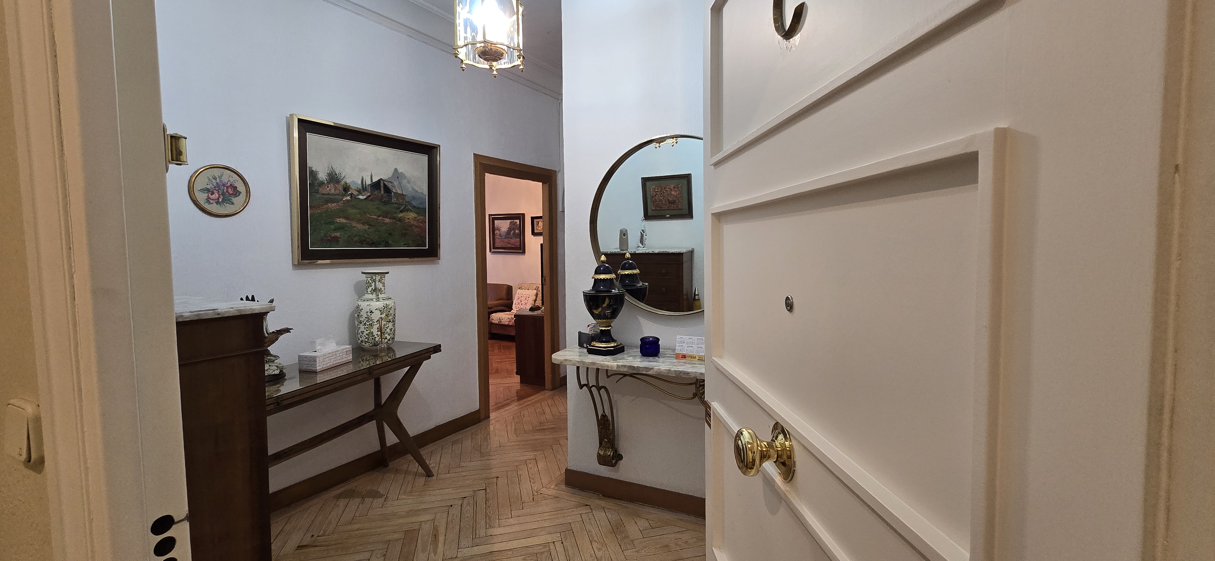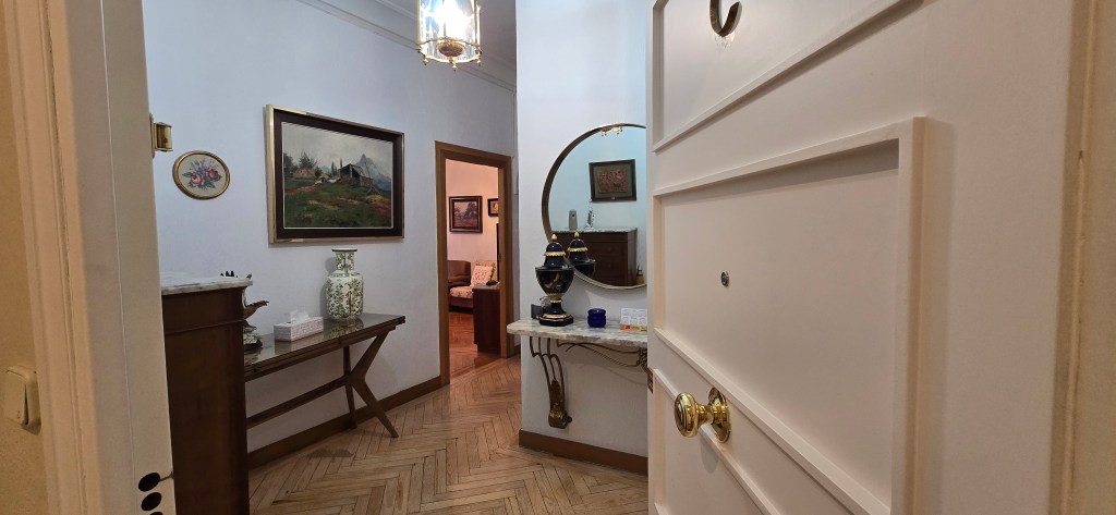 Bathed in natural light from its full external orientation, the property offers serene, open views over the cityscape. The spacious layout comprises a generous reception room, 4 bedrooms, and two bathrooms. A defining feature is its remarkable flexibility: the potential to be divided into two independent flats, thanks to the presence of both a main and a service entrance. This presents an ideal solution for modern family living or represents a shrewd investment opportunity.